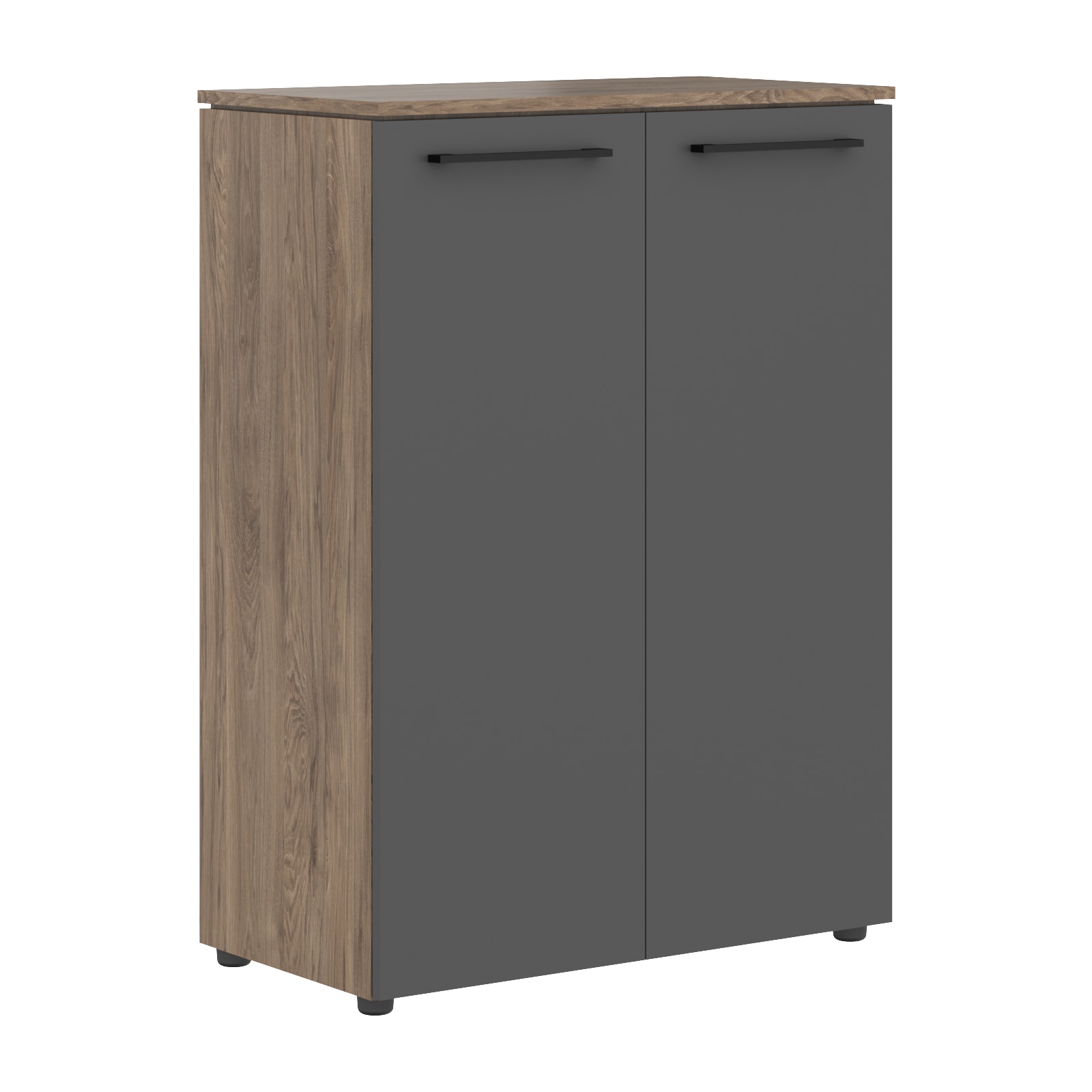 Столешница и опоры из ЛДСП толщиной 38мм с кромкой ПВХ т.2мм в цвет ЛДСП. Стол комплектуется регулируемыми опорами. Фронтальная панель из одностороннего МДФ т.19мм фрезерованного крашенного матовой эмалью, высотой до пола h=640мм.